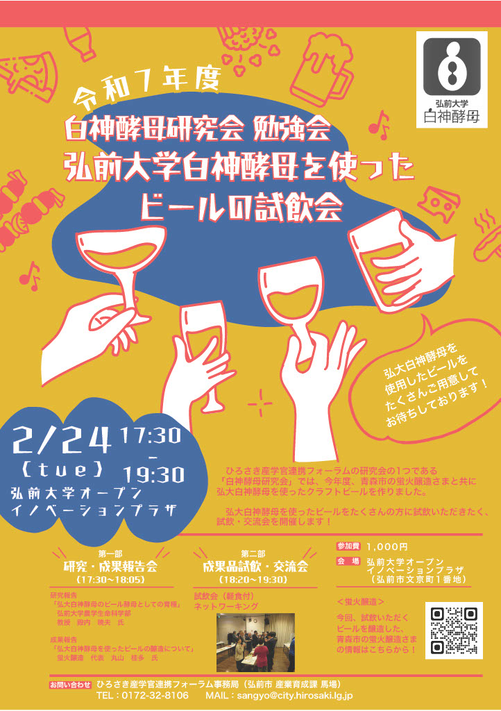 今回は、弘前大学白神酵母を使った、ビールの試飲会もありますので、皆様お誘いあわせの上、ぜひご参加ください。